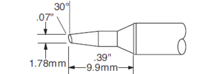 The STTC soldering iron tip corresponds to the MX-RM3E, MX-RM6E, MX-H1-AV, and MX-H7-SF handles in the MX-500, MX-5000, and MX-5200 soldering systems (Note: STTC/SMTC soldering iron tips cannot be used on CV-5200 series machines.)