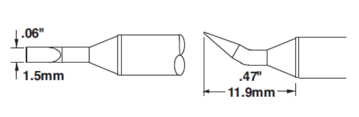 The STTC soldering iron tip corresponds to the MX-RM3E, MX-RM6E, MX-H1-AV, and MX-H7-SF handles in the MX-500, MX-5000, and MX-5200 soldering systems (Note: STTC/SMTC soldering iron tips cannot be used on CV-5200 series machines.)