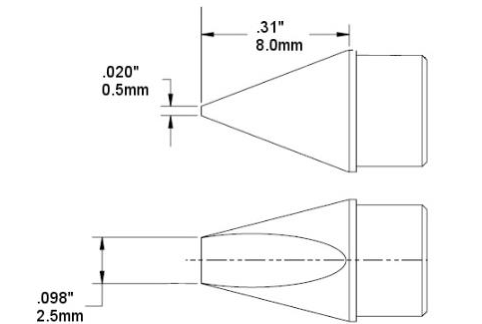 The HCV soldering iron tip adds additional heat energy and is suitable for soldering with high heat demand, suitable for MX-500, MX-5000, MX-5200, CV-5200, MX-H6-HTD, CV-H6-HTD, and CV-H7-HTD handles for the CV-500 system.